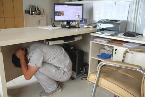 下午15時40分,隨著地震警報信號的響起,各樓層引導(dǎo)員迅速組織職工就近避險。緊接著,二次警報響起,撤離疏散信號一經(jīng)發(fā)出,各引導(dǎo)員立即組織職工按照即定路線疏散撤離,根據(jù)應(yīng)急疏散路線圖,廣大職工迅速成隊,兵分兩路,從兩側(cè)樓梯快速有序撤離到室外安全地帶,到達安全區(qū)域后,各樓層引導(dǎo)員立即清點人數(shù),整個活動用時4分鐘,全體人員避護方法正確、撤離快速有序,沒有發(fā)生擁擠、踩踏事故,活動取得了時效。