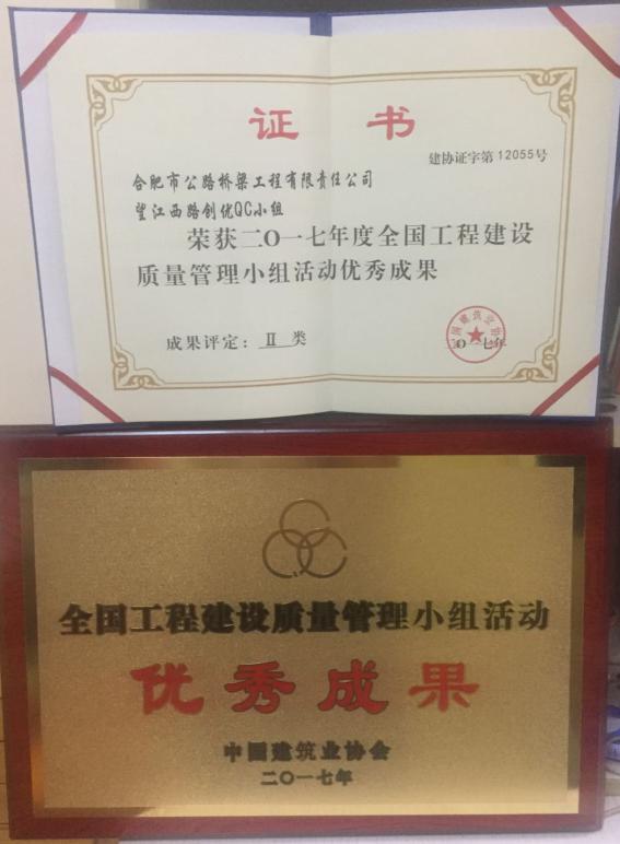 一直以來,合肥路橋公司高度重視項(xiàng)目管理,狠抓質(zhì)量管理與創(chuàng)新,積極開展QC小組活動(dòng),激發(fā)廣大一線職工的積極性和創(chuàng)造性,有效解決了施工中的疑難問題,改進(jìn)了質(zhì)量, 為工程建設(shè)優(yōu)質(zhì)高效推進(jìn)打下了堅(jiān)實(shí)的基礎(chǔ)。